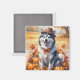 Alaskan Malamute in Autumn Leaves Thanksgiving Art Magnet