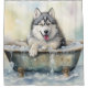 Alaskan Malamute In Bathtub Watercolor Dog Art Shower Curtain
