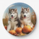 Alaskan Malamute Puppy Autumn Delight Pumpkin Paper Plate