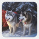 Alaskan Malamute Snowy Sleigh Ride Christmas Square Sticker