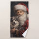 Alaskan Malamute with Santa Claus Christmas Bath Towel Set