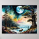 Alaskan Moose at the waters Edge of Woodland Poster