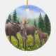 Original fine art design of an Alaskan moose family by illustrator/designer Carolyn McFann of Two Purring Cats Studio on a quality holiday ornament for wildlife fans.