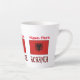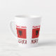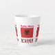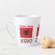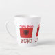 Personalised latte mug features the Albanian Flag with the name ALBANIA written below, in the red and black colours of the flag. Add your name, in red letters, in the space provided for a personal look. Or, create a gift by adding someone else's name. Fun to use at club and travel group events or friend and family reunions. Lovely housewarming gift, too.