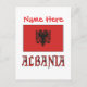 Postcard on back for your personalised message. The front features the Albanian Flag with the word ALBANIA written below, in the colours of the flag. On top is a place for a name in red letters, to make a cool card. Great for holiday notes or anytime.