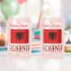 Personalised, set of two can glasses featuring the Albanian Flag with the name ALBANIA written below, in the red and black colours of the flag. Add your name, in red letters, in the space provided for a personal look. Or, create a gift by adding someone else's name. Each glass can have a different name, or both can have the same one. Fun to use at family reunions, travel groups, and clubs. Very thoughtful housewarming gift. Great gifts for Mum and Dad on Mother's Day or Father's Day, to honour their heritage.