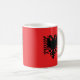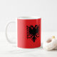 Albania flag. A black, double-headed eagle is prominently displayed on a red background. The design is symmetrical with detailed feathering on the eagle.