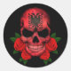 Albanian Flag Skull with Red Roses Classic Round Sticker