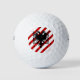 Flag of Albania in stripes format and Albanian Coat of arms black eagle double head