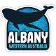 A bold, eye catching design celebrating Albany, in the Great Southern Region of Western Australia. This artwork features a striking silhouette of a whale.