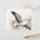 This postcard features a beautiful watercolor painting of an albatross in flight, soaring gracefully against a dreamy, pastel-toned background. The bird's wings, elegantly detailed with soft gradients of brown and grey, stretch wide as it glides effortlessly through the air. The subtle splashes of colour in the background—blues, oranges, and greens—enhance the feeling of freedom and harmony with nature. Perfect for coastal or nautical-themed décor, this artwork captures the majestic essence of the albatross, symbolising endurance and boundless exploration. A delightful choice for art lovers and nature enthusiasts alike.