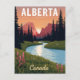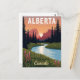 Celebrate the breathtaking wilderness of Alberta, Canada, with this vibrant vintage-style postcard. The design features a winding river flowing through lush greenery with pink wildflowers, set against a stunning backdrop of the Rocky Mountains at sunset. This classic travel poster artwork is perfect for nature lovers, campers, hikers, and anyone who appreciates Canadian scenery. Ideal for sending greetings, keeping as a souvenir, or framing as beautiful, rustic wall art.