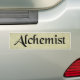Alchemist bumper sticker - black script lettering on a parchment coloured background.