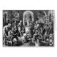Master alchemist sits in a chair studying rare alchemy manuscripts with his assistant. Apprentices operate the various lab apparatus in the process of distillation. Mortar and pestle to mix ingredients, bellows to warm the fire. Furnaces are tended by the older adepts to heat retorts and collect distillate in receivers.