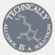 "Technically, alcohol IS a solution." Text with an alcohol molecule symbol, t-shirts, sweats, cards, gifts.