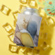 Alcohol ink swirls, yellow tint, abstract. can cooler