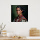 Oil painting portrait of a beautiful young Bolivian woman in semi-traditional clothing.