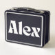 Made from premium-quality metal, this lunchbox is built to withstand daily use while maintaining its sleek and modern appearance. Its durable construction ensures it’s ready to handle everything from busy school days to office lunch breaks. The smooth finish and minimalist design are enhanced by the stylishly displayed name Alex, making this lunchbox not only practical but also a unique and personalised accessory. The retro-inspired design with a contemporary twist adds an extra layer of coolness, blending vintage charm with modern functionality.
