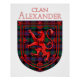 Alexander Scottish tartan plaid pattern design for the Alexander Clan Family underneath the red Lion Rampant Shield of Scotland.