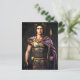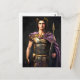 “Alexander the Great” - Conqueror of Empires. A stylised depiction of Alexander the Great. A young man in his late twenties with piercing blue eyes, standing confidently. He has long light brown or dark blonde, wavy hair. He wears a finely crafted bronze cuirass (breastplate) adorned with intricate engravings, possibly featuring mythological scenes or symbols of his divinity. Over his shoulders, he wears a short, flowing purple cloak (chlamys) fastened with a gold brooch at the right shoulder, symbolising royalty. He holds a hoplon (shield) and a spear in one hand and a stylised depiction of his Kopis (sword) in the other. A golden wreath encircles his head, symbolising his claim to divine ancestry.