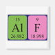 Alf spelled out as Al F (Aluminium Fluorine) on a magnet for the scientist in you.