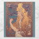 This image is based on an Alfonse Mucha 1896 Job poster. One of the defining images of the Art Nouveau movement, this advertising poster featured Mucha's long haird goddess lady with swirling hair.
