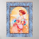 The central image is an Alfonse Mucha image that I have cropped of a lady with flowers. I have added a background border in blue and gold. This makes a beautiful Art Nouveau print/poster. This could be framed for a wall or used in crafts.
