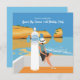 The Algarve region is famous for its amazing coastline and beautiful beaches with yellow rock cliffs and cave formations, warm crystal-clear waters, and bright sun. Tourists love the cliff-backed beaches, in the southern end of Portugal. It's a perfect holiday destination for beach lovers. Whitewashed architecture with Moorish-style doors and rooftops where old traditional chimneys are standing still is also an attraction. These decorative chimneys didn’t start appearing on houses until the late 17th and early 18th centuries. Some say they were a form to identify a house because they all look alike painted in white and a symbol of wealth. The more ornamented the richer the owner would be. Algarvian ornamental chimneys inspired this illustration created in vintage old travel poster style with simplicity and bright colours. If you have a friend, co-worker, teacher, or a relative of Portuguese nationality, they will undoubtedly appreciate this invitation. All words are customisable. You can change the words, the font, the colours, place it elsewhere or remove it.