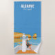 The Algarve region is famous for its amazing coastline and beautiful beaches with yellow rock cliffs and cave formations, warm crystal-clear waters, and bright sun. Tourists love the cliff-backed beaches, in the southern end of Portugal. It's a perfect holiday destination for beach lovers. Whitewashed architecture with Moorish-style doors and rooftops where old traditional chimneys are standing still is also an attraction. These decorative chimneys didn’t start appearing on houses until the late 17th and early 18th centuries. Some say they were a form to identify a house because they all look alike painted in white and a symbol of wealth. The more ornamented the richer the owner would be. Algarvian ornamental chimneys inspired this illustration created in vintage old poster travel style with simplicity and bright colours. If you have a friend, co-worker, teacher, or a relative of Portuguese nationality, they will undoubtedly appreciate it. If you want a souvenir of Portugal, this Algave-inspired design is ideal for you. And if you are planning a summer trip to the southern coast and can't stop thinking about what awaits you in the sun, maybe offering yourself a treat will feel good, too! All words are customisable. You can change the words, the font, the colours, place it elsewhere or remove it.