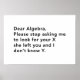 Dear algebra, please stop asking me to look for your X she left you and I don't know Y.