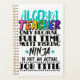 Algebra Teacher: Because 'Full-Time Multitasking Ninja' Isn't an Official Job Title. Master of equations, solver of mysteries, and juggler of a million tasks one variable at a time! This funny algebra design is the perfect gift for an algebra teacher, professor, instructor, or coach.