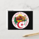 The current form of the emblem with Arabic writing was adopted on 1 November 1976, but was only differentiated from previous one by the changing of the motto from French to Arabic. Contained on the emblem is the crescent that is also found on the flag of Algeria, and is a symbol of Islam. The text that encircles the emblem says in Arabic: الجمهورية الجزائرية الديمقراطية الشعبية ("The People's Democratic Republic of Algeria", the country's official name).