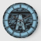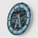 This clock has a blue letter "A" for alcie against a black lace pattern.