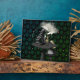 Stylish tabletop art plaque features black, gray and gold tinted original illustration of Alice and the Caterpillar from Alice in Wonderland, on black quilted background