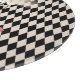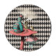 A black and white chequered background with a vintage alice and the hookah smoking caterpillar image