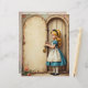 Unlock the next chapter of your creativity with this delightful paper featuring a vintage Alice in Wonderland scene. It showcases Alice holding a key, ready to enter a whimsical world through an open door, with charming roses at her feet. With unlimited creative possibilities, this paper is perfect for invitations, scrapbooking, junk journalling, and other personalised projects. Printed in high-quality, full-colour on thin matte paper, it's designed to bring a crisp, professional look to your personal or business mailings. Add personal photos and text for no additional upcharge, making it a versatile and memorable addition to any project.