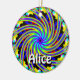 The rainbow spiral artwork is printed on both sides of this ornament... The word Alice is printed on one side only... You may change the word... Or you may delete it entirely... You can wear this as a necklace if you provide a long string...