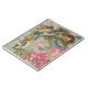 This is the classic Alice in Wonderland and the Cheshire Cat, as Alice chats with the Cheshire Cat who is sitting in its tree. This Alice in Wonderland image is based on the original Cheshire Cat image from the original Alice's Adventures in Wonderland series by illustrator John Tenniel, put together in a collage with flowers, a key, pocket watches, and butterflies for a beautiful art piece celebrating everything Alice.