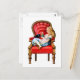 Alice and Dinah relaxing in a comfy velvet chair after a journey Through the Looking Glass to Wonderland.