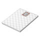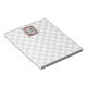 5.5” x 6” notepad with an image of a grey and white chequerboard and a vintage Alice in Wonderland image of Alice in the Queen of Hearts’ courtyard with a black and white chequerboard frame on a background of playing cards on red. See the entire Wonderland Notepad collection in the PARTY FAVORS section.