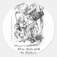 Alice chats with the Duchess. Sir John Tenniel's 1865 illustrations for Alice’s Adventures in Wonderland are thought to be his finest art. They rank among the world's best-known children's images. Choose from two sizes of stickers, small (1.5" round ,20 per sheet) or large (3" round, 6 per sheet). They're great for personalising envelopes, decorating packages, scrapbooking, making childrens' greeting cards, and hundreds of other uses!