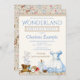 Alice in wonderland birthday party invitation with pretty watercolor blue dress, tea cups, hat, watch, key, etc., on a vintage background. This storybook them Alice in Wonderland birthday party invitation is easily customised for your event by simply adding your details.