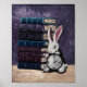 Print of an original handmade painting by Ash Stral, featuring the iconic White Rabbit from Alice in Wonderland. Standing in front of a towering stack of books and holding a large clock, the White Rabbit exudes both curiosity and urgency, as if he's just about to dive into another whimsical adventure. Rendered in mesmerising shades of purple and magenta, this artwork is unique and vibrant.