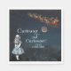 Alice from the children's book Alice in Wonderland looks up into the blue night sky at a vintage Santa and his sleigh full of toys, along with her quotation from the book "Curiouser and curiouser, cried Alice!" and a lovely moon to make these magical and fun Christmas napkins.
