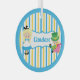 Cute Alice in Wonderland Christmas ornament gift. Little girl Alice in her blue dress and the Mad Hatter sit on a pretty blue yellow stripes. Customise this whimsical bookworm present with your own text for your favourite librarian.
