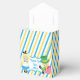 Cute Alice in Wonderland party favour box for a book themed birthday. Little girl Alice in her blue dress and the Mad Hatter in a teacup on a pretty blue border on a whimsical baby blue and yellow striped pattern. Customise with your own text for a children's tea party.