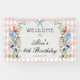 Stepping into our version of Wonderland with our charming vintage floral 'Welcome to' Birthday Party Banner 🌷. It’s more than just a decoration, it's a backdrop to create memories that will last a lifetime. Its vibrant colours, with a pink diamond pattern, and personalised welcome sign framed with sweet wildflowers and a blue bow, compliment our Alice in Wonderland Collection in the most magical way