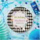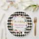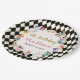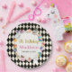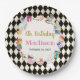 Alice in Wonderland kids birthday paper plate, with black & white background. Personalise with your info. Mad tea party paper plates. Wording can be adjusted for any birthday. Match with other Alice in Wonderland birthday party items from "Alice in Wonderland Birthday" collection.