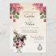Alice in Wonderland Wedding Invitation features pink roses, the rabbit, the clock, a butterfly and Alice. Elegant Alice in Wonderland wedding invitation.
