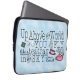 The quote on this pretty, whimsical laptop sleeve for the avid reader comes from a Lewis Carroll poem in his book, "Alice in Wonderland." The Mad Hatter recites it at the tea party: Up above the world you fly / Like a tea-tray in the sky. The fancy typography design features a teacup, a teapot and a tea bag, complete with swirling steam - all floating on a light blue cloudy sky background.